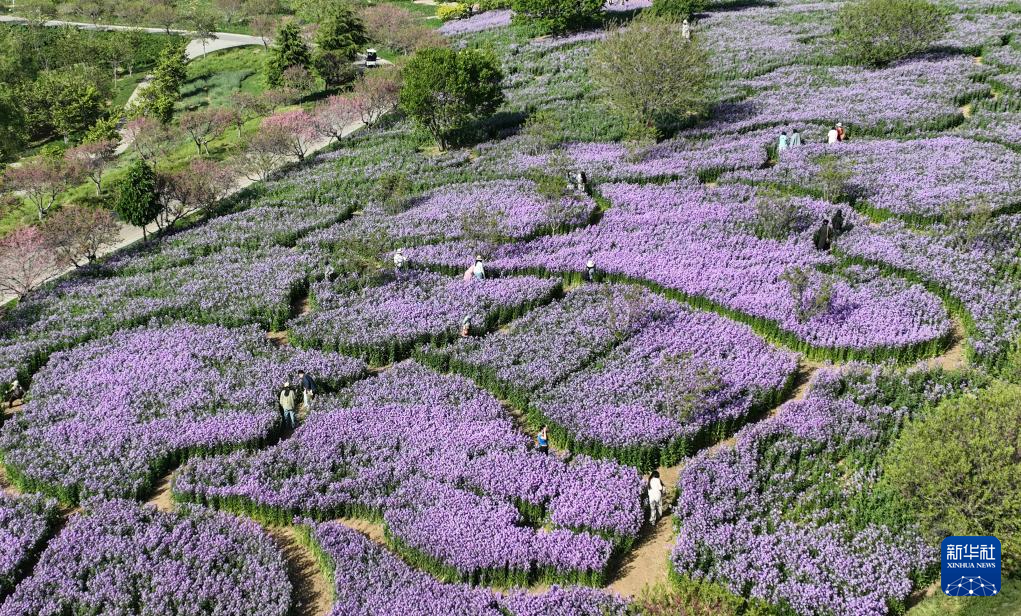 5月11日,游客在大连英歌石植物园游览(无人机照片)。新华社记者 龙雷 摄