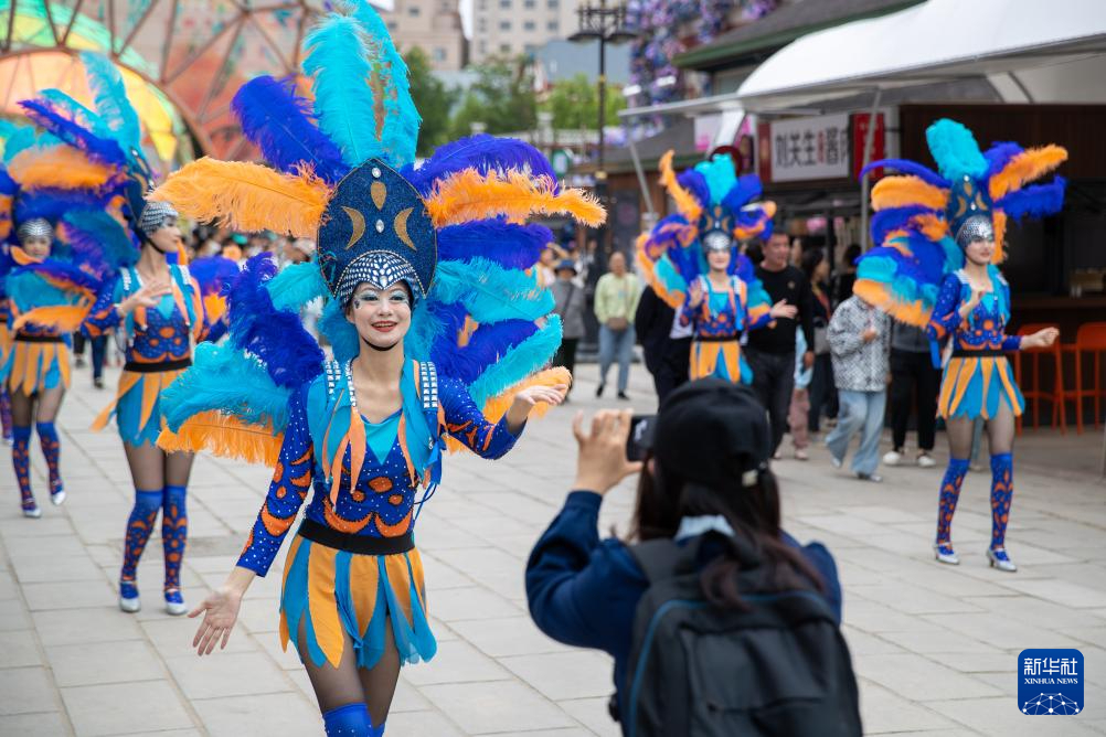 5月25日,游客在大连俄罗斯风情街欣赏表演。新华社记者 李旭伦 摄pagebreak