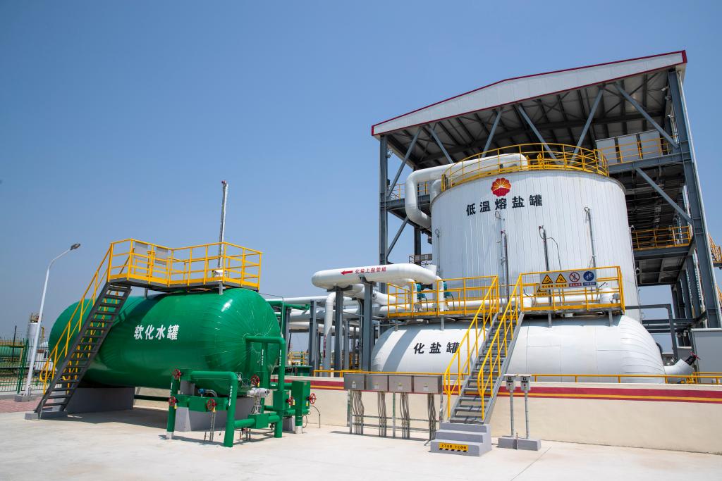 “我们创新采用了电热熔盐储能注汽技术,将电转化为热能储存在熔盐中,通过水与熔盐连续换热,产生295摄氏度高温湿饱和蒸汽,再注入井下。这项技术无需燃烧天然气,还可以解决波动性产能与连续性用能矛盾等问题。”辽河油田设计院院长孙雁伯介绍。