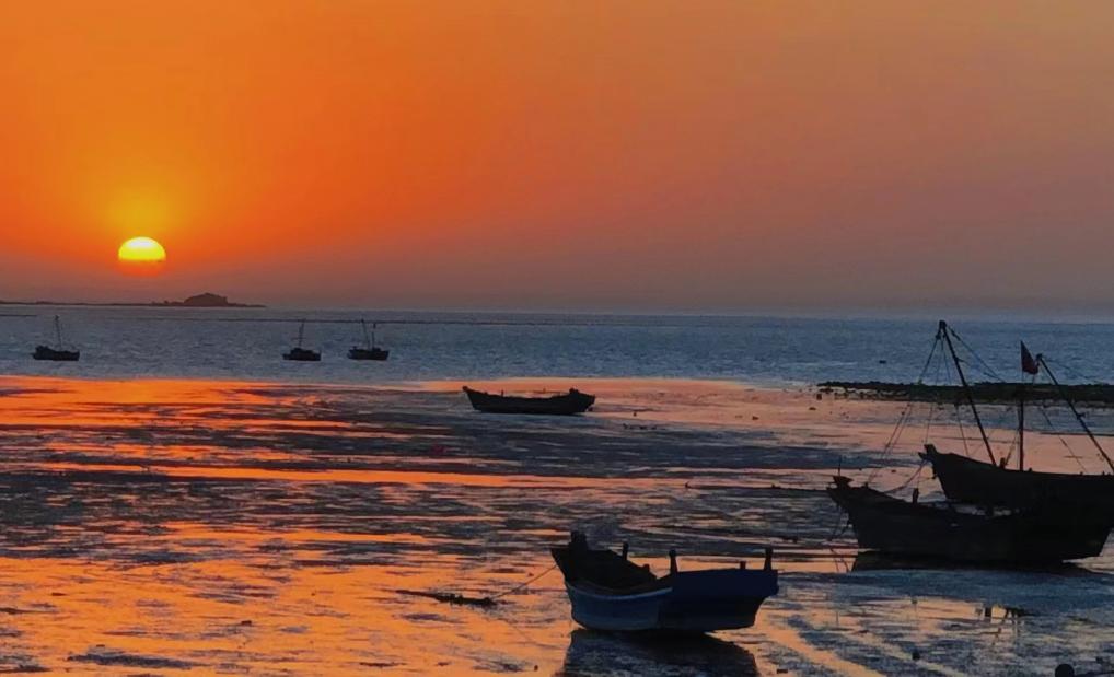 夕阳落进平静的海湾,暮归的渔船三三两两,给这座本就安静的小岛带来了独特的美好。岸边,孩子们挖沙,嬉戏喧闹;大人们露营,一杯啤酒,几根烤串,暂时远离了都市的喧嚣。一群玩耍的孩子对记者说:“这里的海边不拥挤,玩得尽兴。”