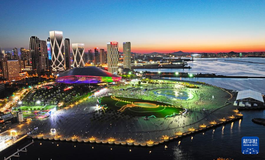 这是6月15日拍摄的夏季达沃斯论坛主会场大连国际会议中心(无人机照片)。新华社记者 杨青 摄