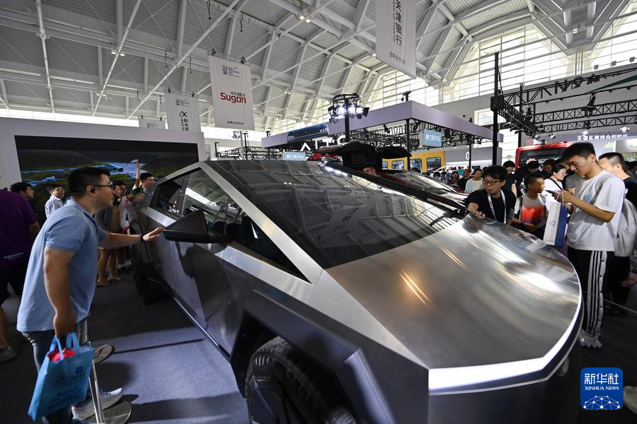 在天津举行的2024世界智能产业博览会上,观众在特斯拉展台参观(6月22日摄)。新华社记者 李然 摄