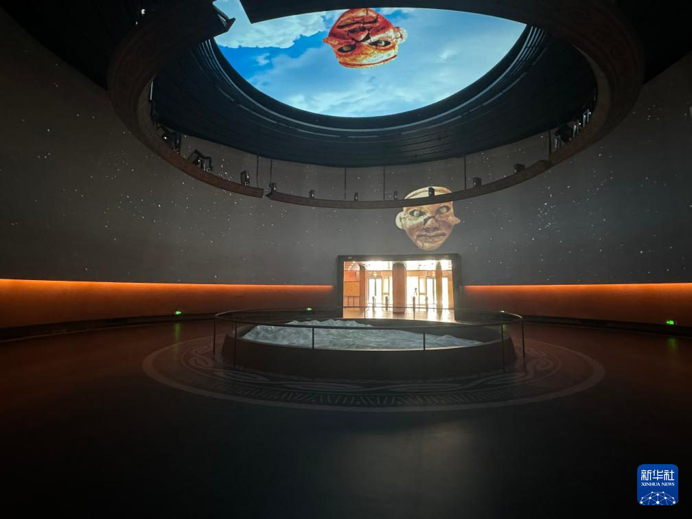 近3500平方米的博物馆内依次分为“序厅”“红山古国”“文明发端”“人文始祖”等7个主题单元,展陈了牛河梁遗址出土的石器、陶器、玉器。一进入序厅,巨幅360度投影屏幕,生动再现了“红山先民”当年的生产生活和祭祀场景。