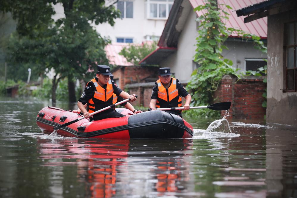 新华网沈阳8月4日电(记者武江民)连日来,辽宁丹东迎来强降雨。为保障辖区群众生命财产安全,丹东边境管理支队第一时间启动防汛应急预案,机关警力全部下沉一线,广大民警冒雨前行,不惧危险,筑起了防汛“安全堤”。
