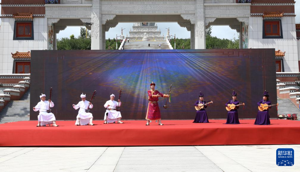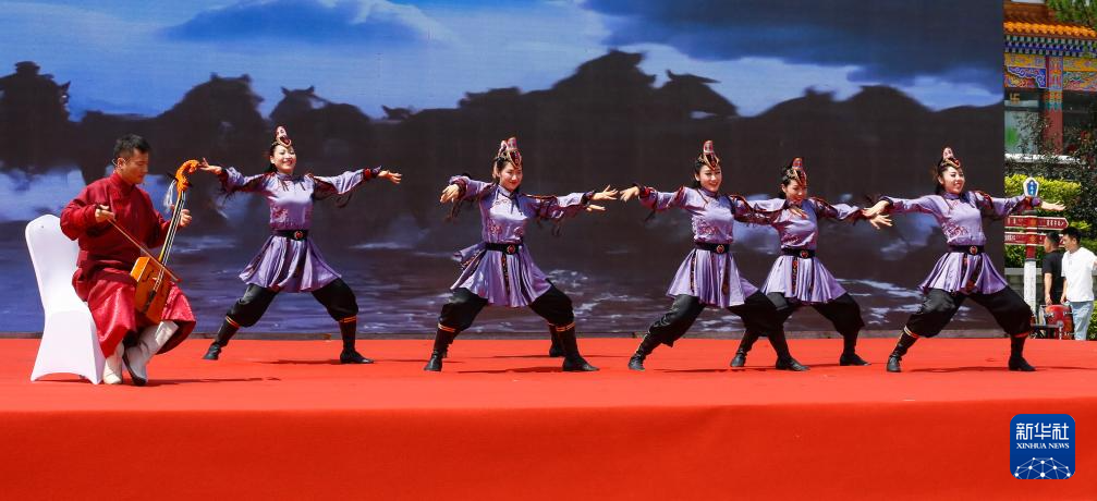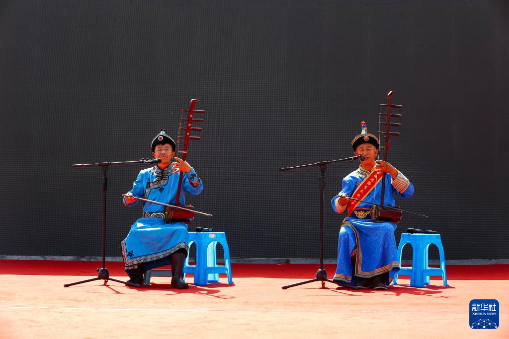 这是8月2日在辽宁省阜新蒙古族自治县查干哈达村第216届睦邻节上拍摄的乐器演奏表演。