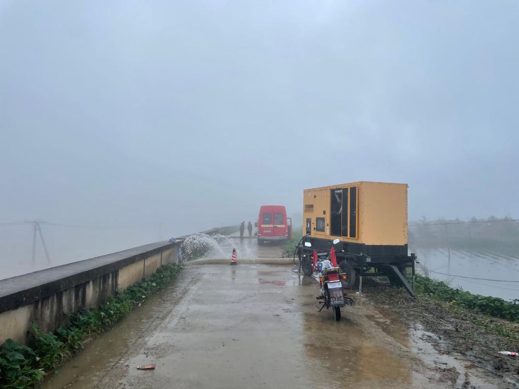 防洪堤坝上,26台抽水泵连续工作,望江村一排排蔬菜大棚内积水逐渐减少。4日一大早,纪洪亮拎着铁锹、扛起锄头,到自家蔬菜大棚里进行翻耕和补种。