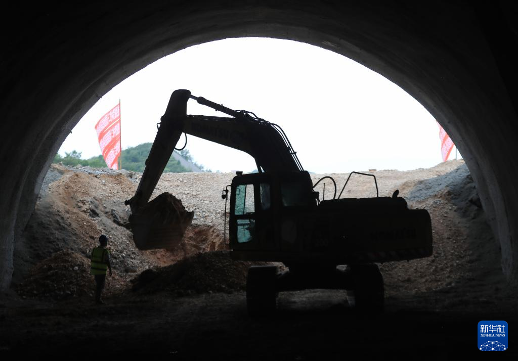 8月13日,中铁二十局建设者操作挖掘机进行出碴作业。