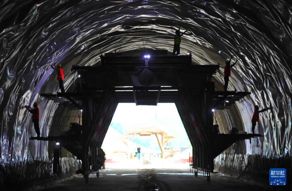 8月13日,中铁二十局建设者在隧道内进行防水板铺设。