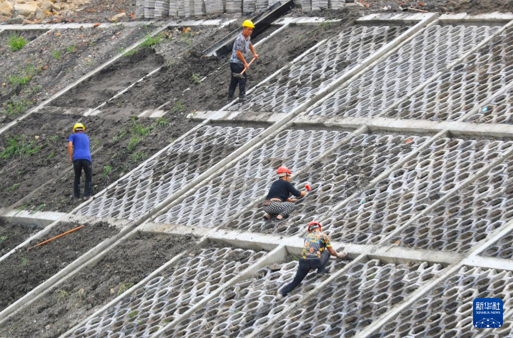 8月14日,施工人员在阜新百年国际赛道城进行边坡治理修复。