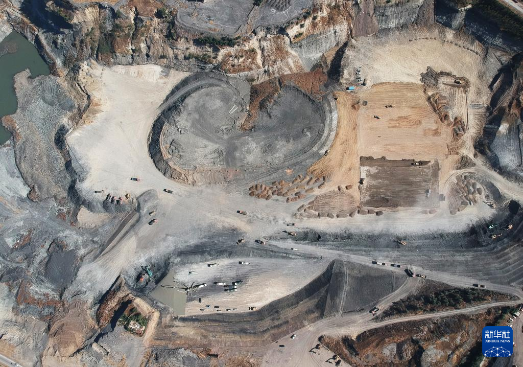 阜新市新邱区曾经废弃的矿坑修复时的场景(2019年10月14日摄)。