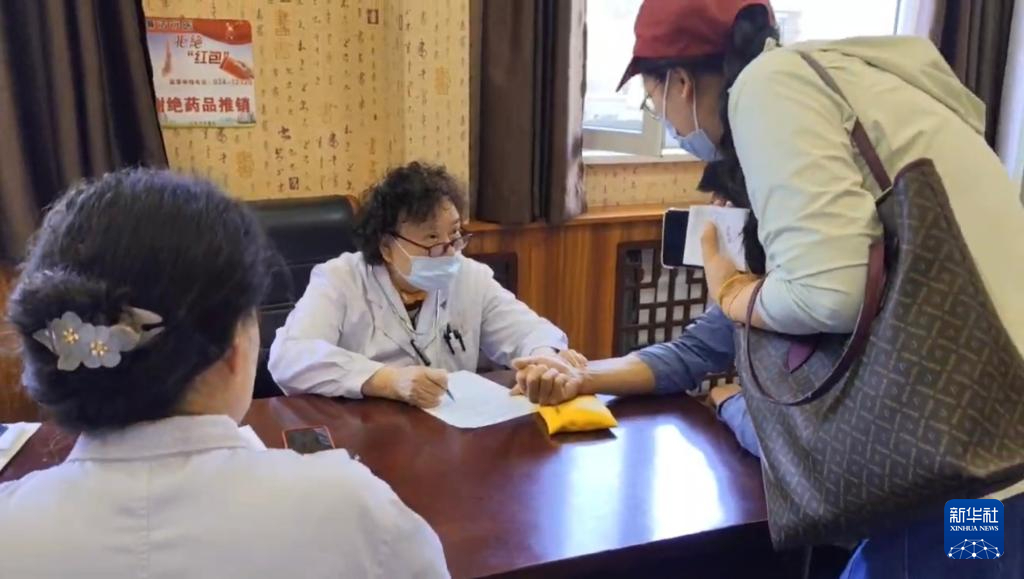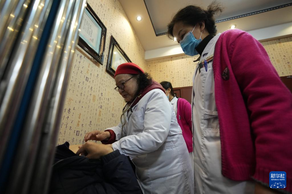 肖瑞崇指导学生为患者诊病。 新华社记者 潘昱龙摄