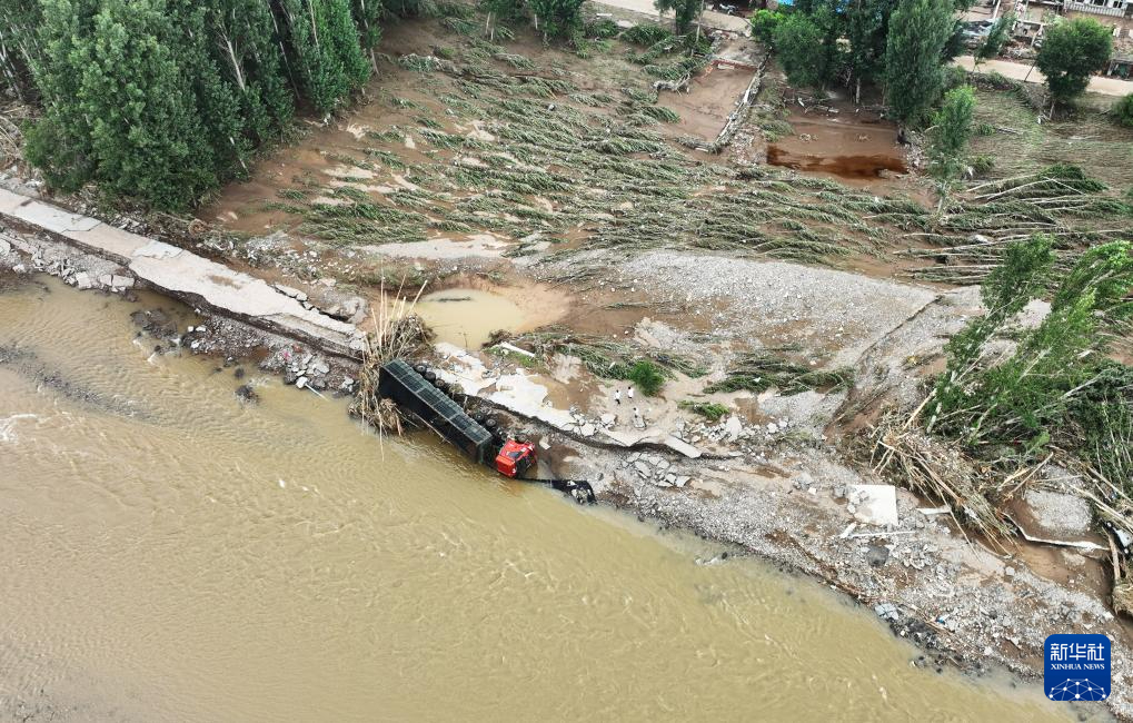 8月21日,在建昌县黑山科乡, 一辆货车被洪水冲毁(无人机照片)。新华社记者 杨青 摄pagebreak
