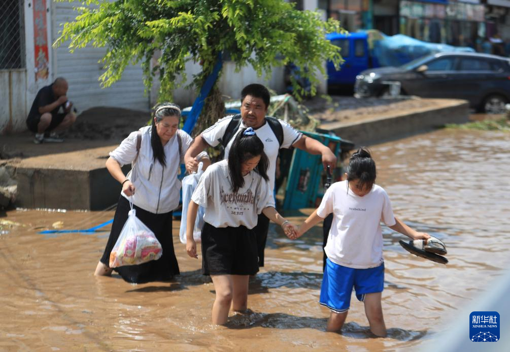 8月21日,在建昌县黑山科乡,居民蹚过积水。新华社记者 杨青 摄pagebreak