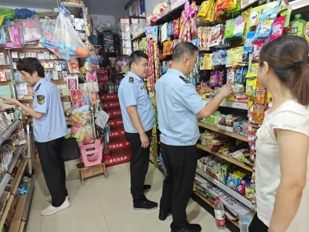 开原市市场监督管理局联合公安、烟草等部门检查校园周边食品生产经营单位。(开原市纪委监委供图)