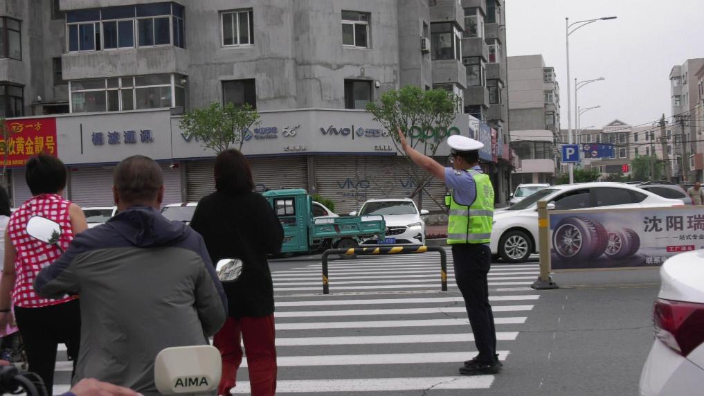 开原市公安交通警察大队的交警正在学校路段指挥车辆有序通过。(开原市纪委监委供图)
