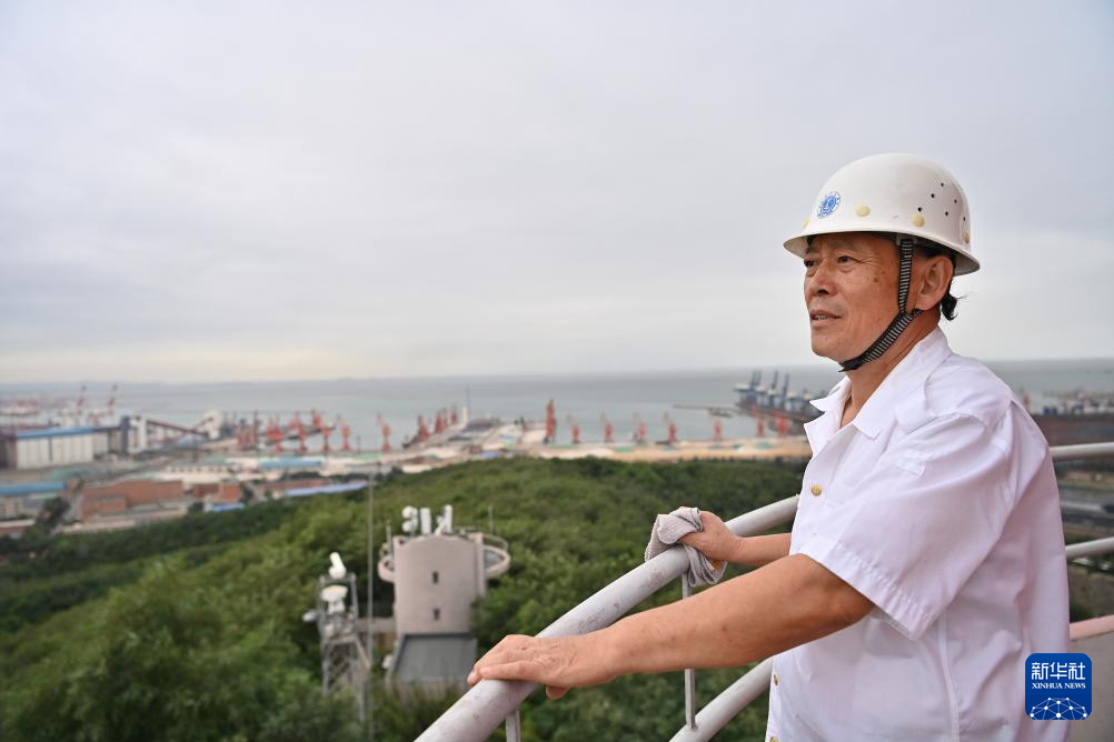 9月10日,王洪安在台子山灯塔顶部瞭望。