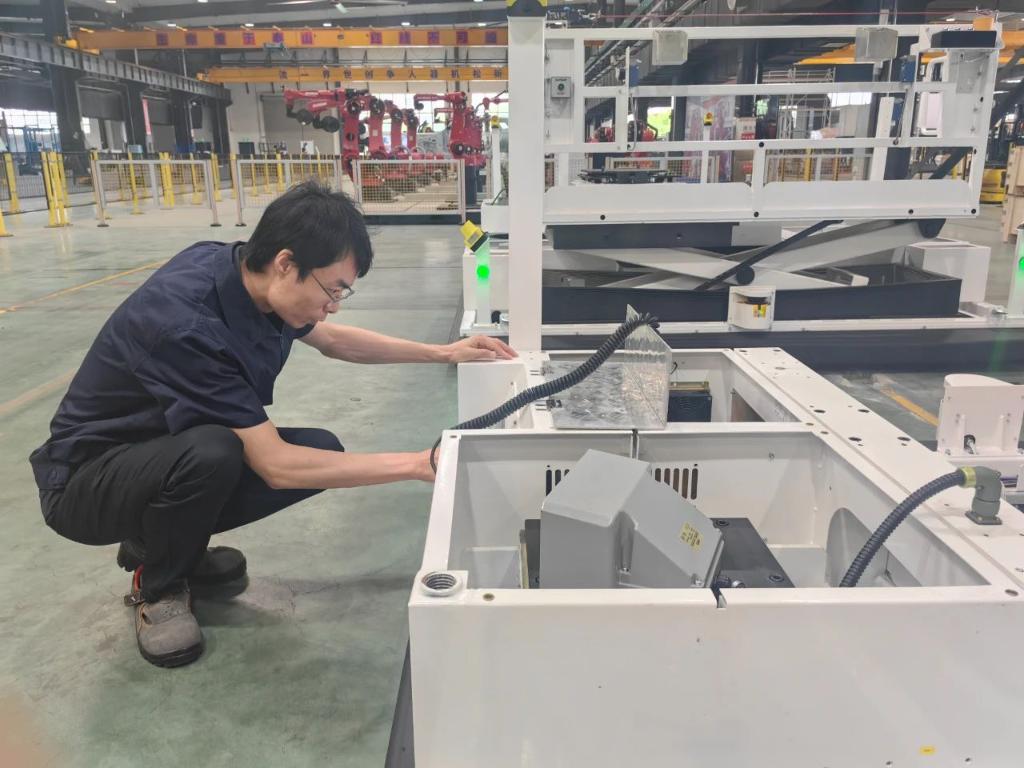 新松移动机器人研究院院长吕祥仁测试设备 李力 摄