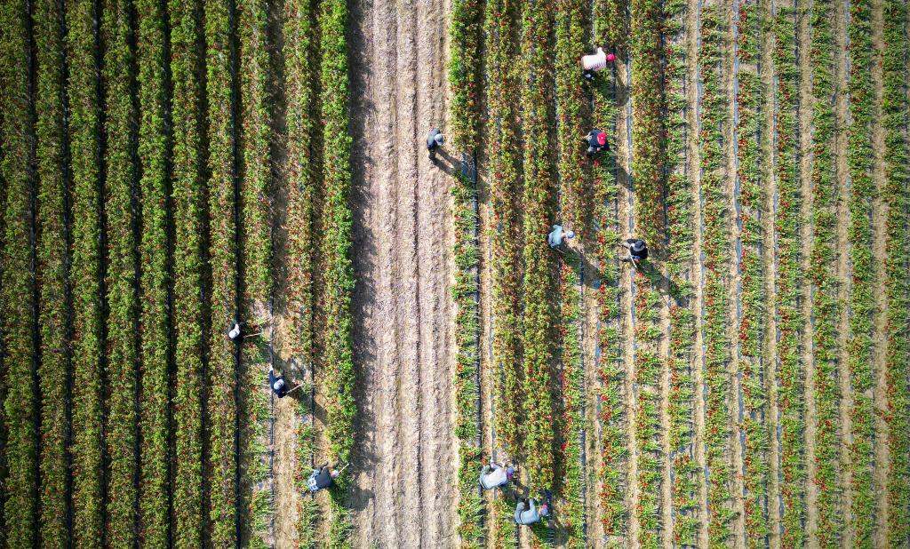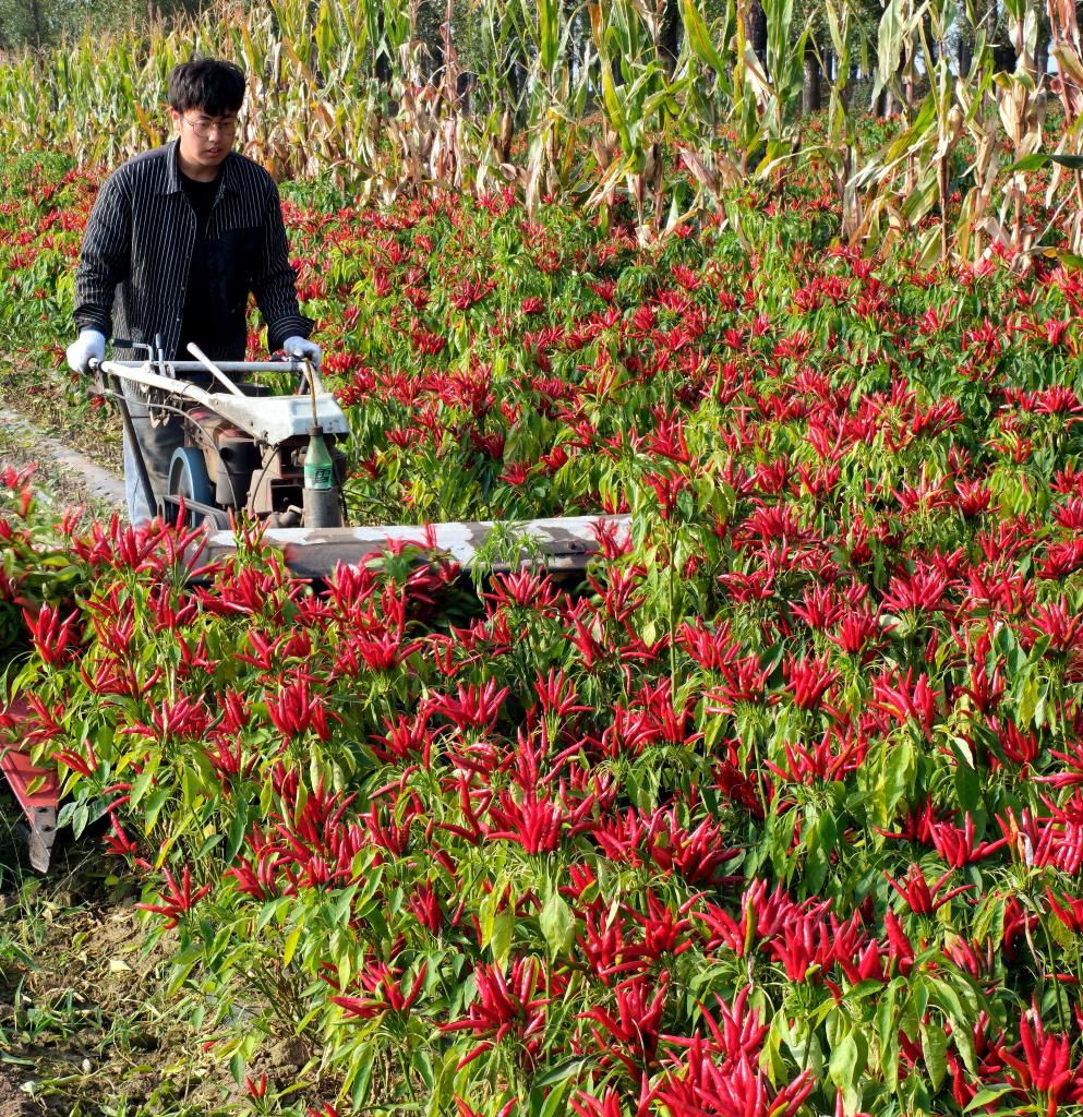 国庆假期期间,辽宁省沈阳市法库县秀水河子镇陈祥堡村种植的辣椒喜获丰收。椒农们在田间地头忙着给辣椒收割,到处一派丰收喜悦景象。(黄金崑)