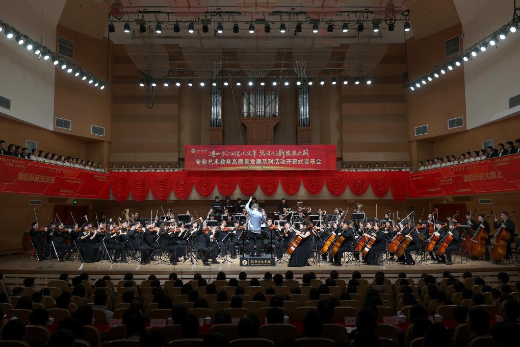 新华网沈阳10月15日电 “进一步全面深化改革 共谋创新发展之路——专业艺术教育高质量发展”系列活动开幕式暨交响音乐会近日在沈阳音乐学院举行。沈阳音乐学院优秀校友代表,有关专家学者和社会各界人士及学院600余名师生共同观看了开幕式暨交响音乐会。