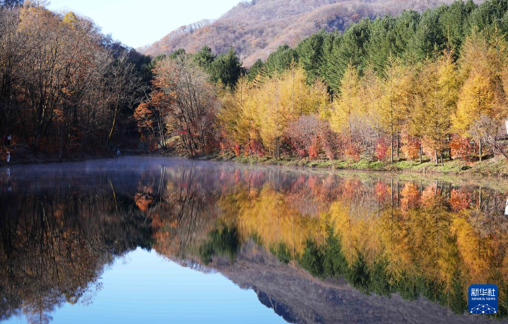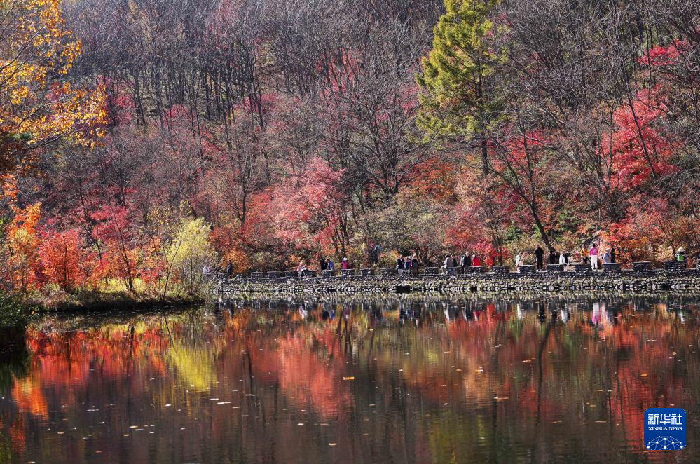 辽宁本溪的大石湖风景区的金秋景色(10月16日摄)。