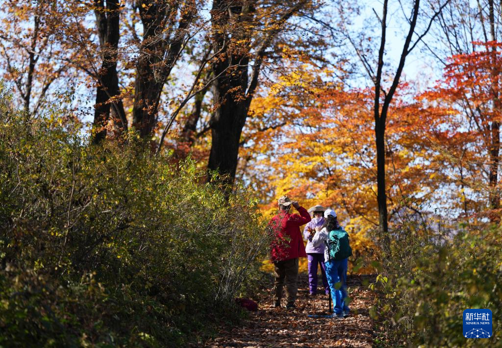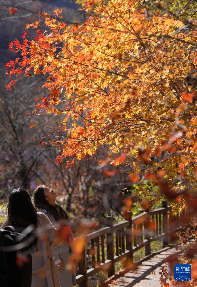 10月16日,游客在辽宁本溪的老边沟风景区游玩。