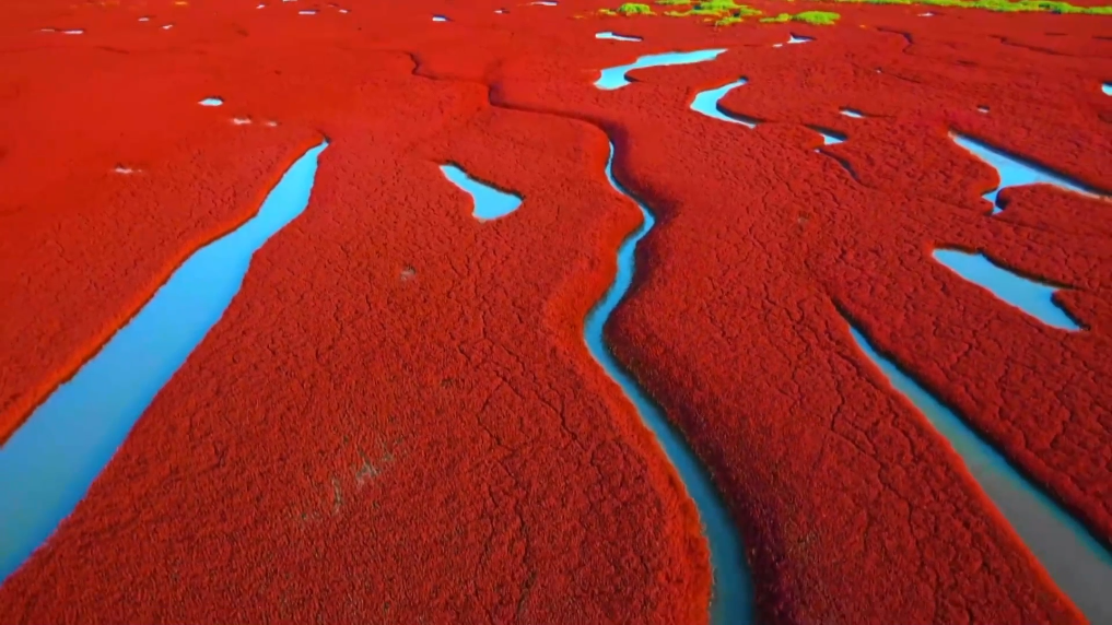 每到秋季,在辽宁省盘锦市,有一片被红色覆盖的海岸线,沙与土、盐与碱,在这里有机结合。特殊的环境所孕育出的碱蓬草,盖满整个滩涂。这块由大片碱蓬草组成的湿地,被列入《中国国家地理》杂志评出的“中国最美沼泽湿地”之一。