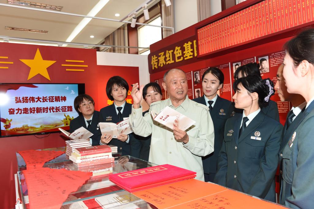 授课完毕,胡世宗将新出版的长征题材作品《延伸,我们的路》进行签名赠送。