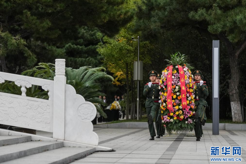 9月30日,辽宁省暨沈阳市向烈士纪念碑敬献花篮仪式在沈阳抗美援朝烈士陵园举行。新华社记者 潘昱龙 摄