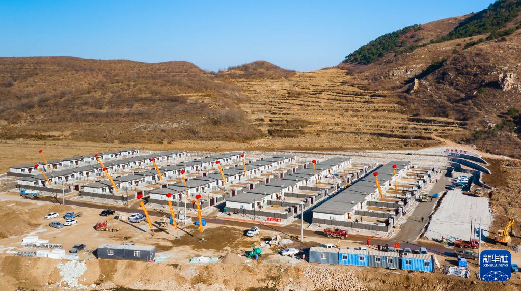 这是11月5日拍摄的辽宁省葫芦岛市绥中县祝家沟村集中安置重建住房(左侧白色房屋,无人机照片)。