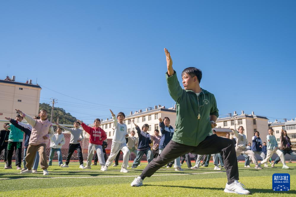2024年11月12日,在云南省会泽县第一中学,老师在给学生上体育课。新华社发(彭奕凯摄)