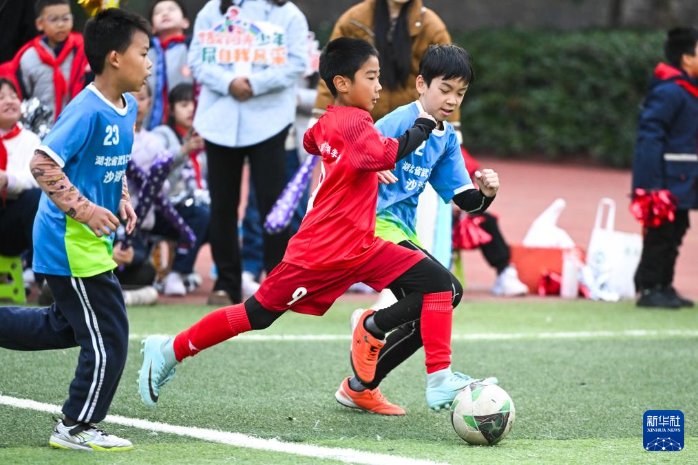 2024年12月2日,湖北省武昌实验中学沙湖学校学生在四年级组足球联赛决赛中拼抢。新华社记者 肖艺九 摄