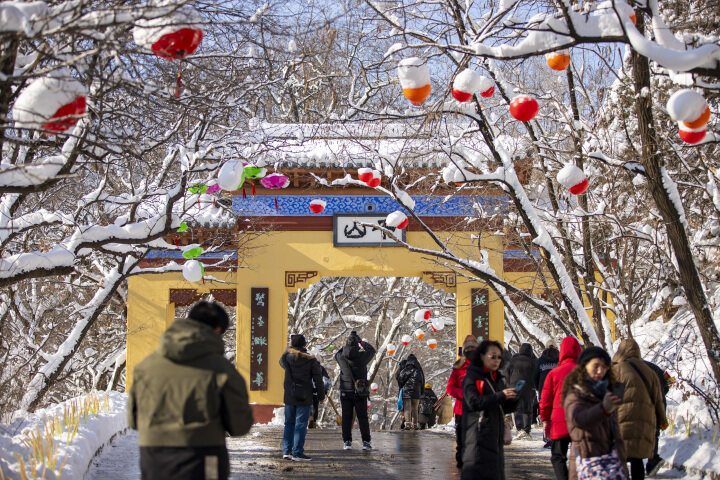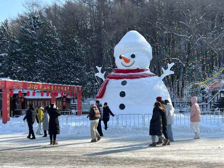 拿着“福”字展板和雪雕拍照,摸着“元宝”和高跷上的“福星”合影,和玩偶、小丑互动,体验百米雪滑梯带来的刺激感……这个春节假期,位于辽宁鞍山的千山风景区又迎来如织客流,日均客流量达15185人次,同比增长22%。