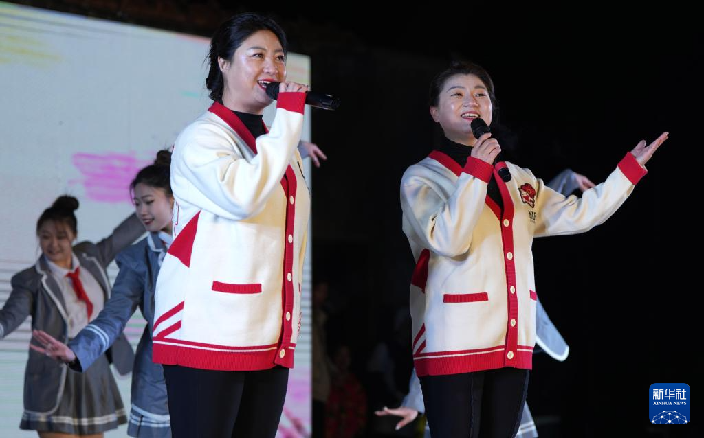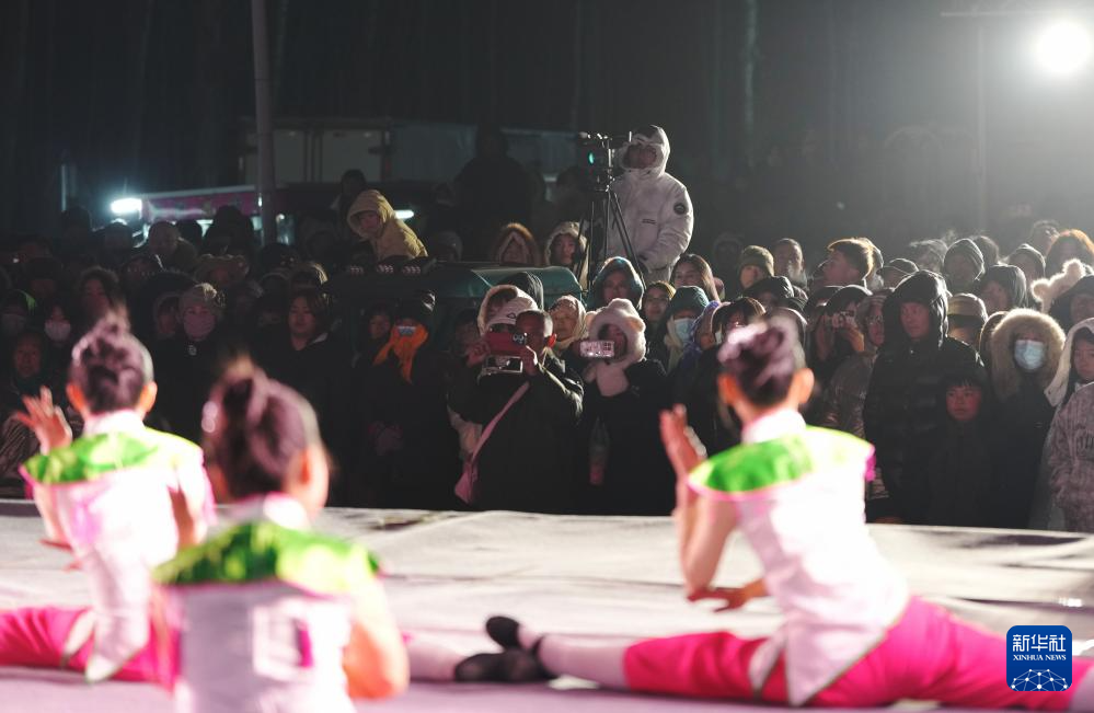 在辽宁省朝阳市朝阳县北四家子乡唐杖子村,演员在“村晚”上表演(2月2日摄)。