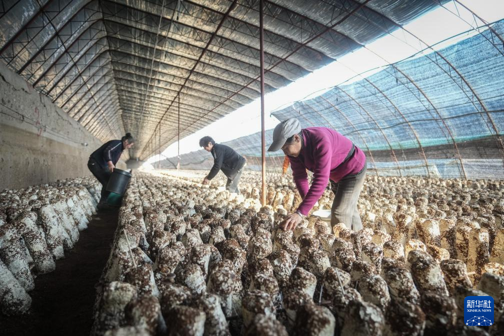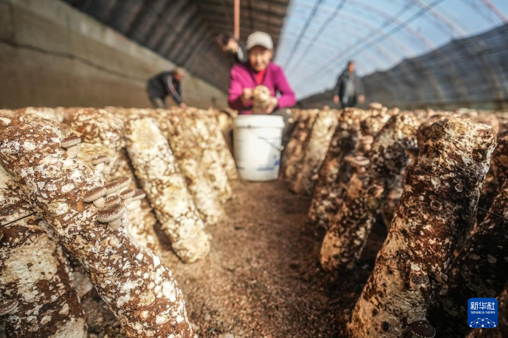 3月6日,在辽宁省葫芦岛市建昌县,种植户在香菇种植大棚采收香菇。
