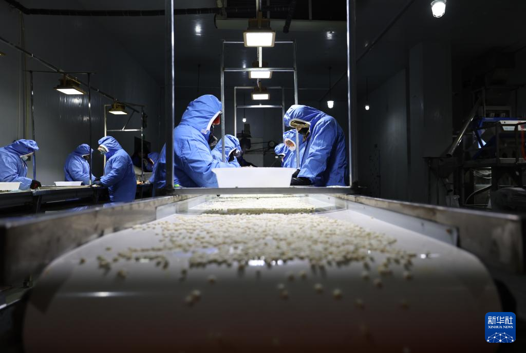 3月11日,在辽宁富安农业发展有限公司,工人在车间挑选玉米粒。新华社记者 杨青 摄