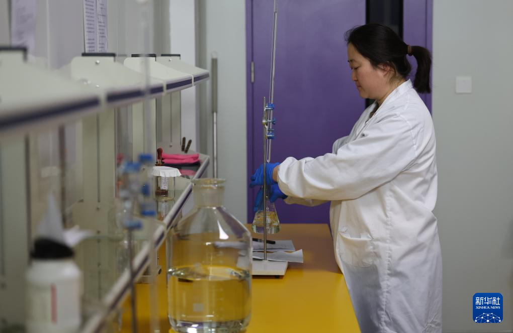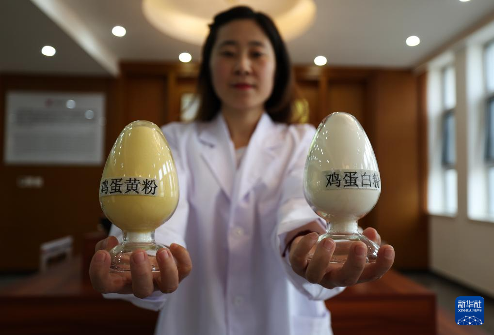 3月11日,在辽宁禾丰蛋业有限公司,技术人员在实验室进行蛋液蛋白质含量检测。新华社记者 杨青 摄