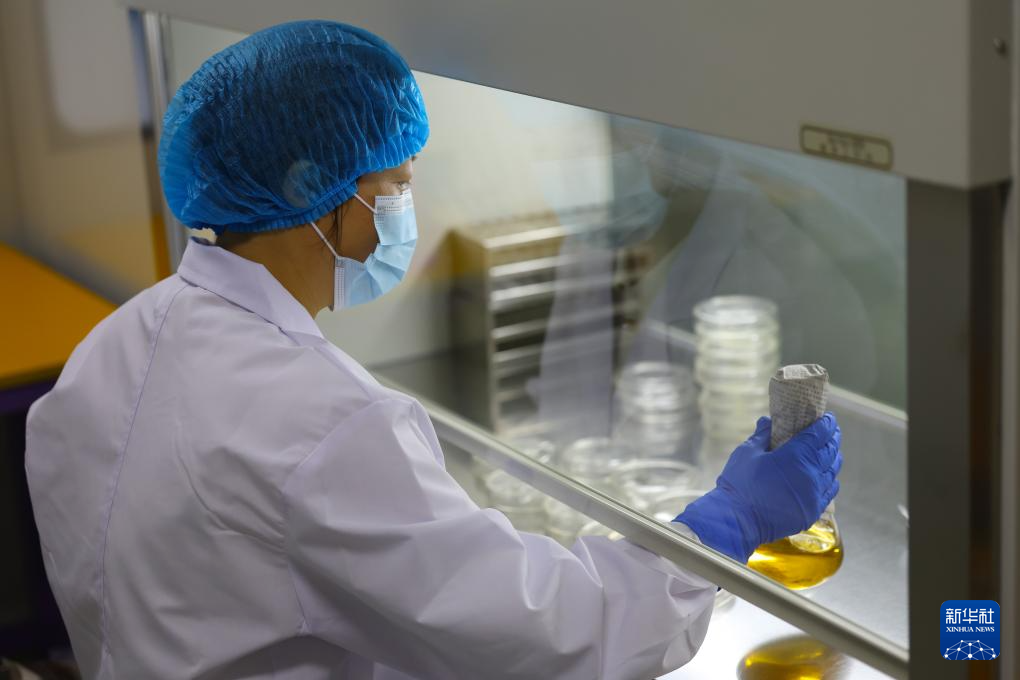 3月11日,在辽宁禾丰蛋业有限公司,技术人员在实验室进行蛋液微生物含量检测。新华社记者 杨青 摄