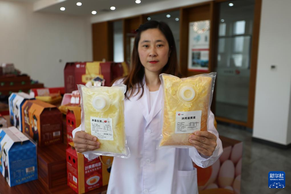 3月11日在辽宁禾丰蛋业有限公司拍摄的冷冻鸡蛋液产品。新华社记者 杨青 摄