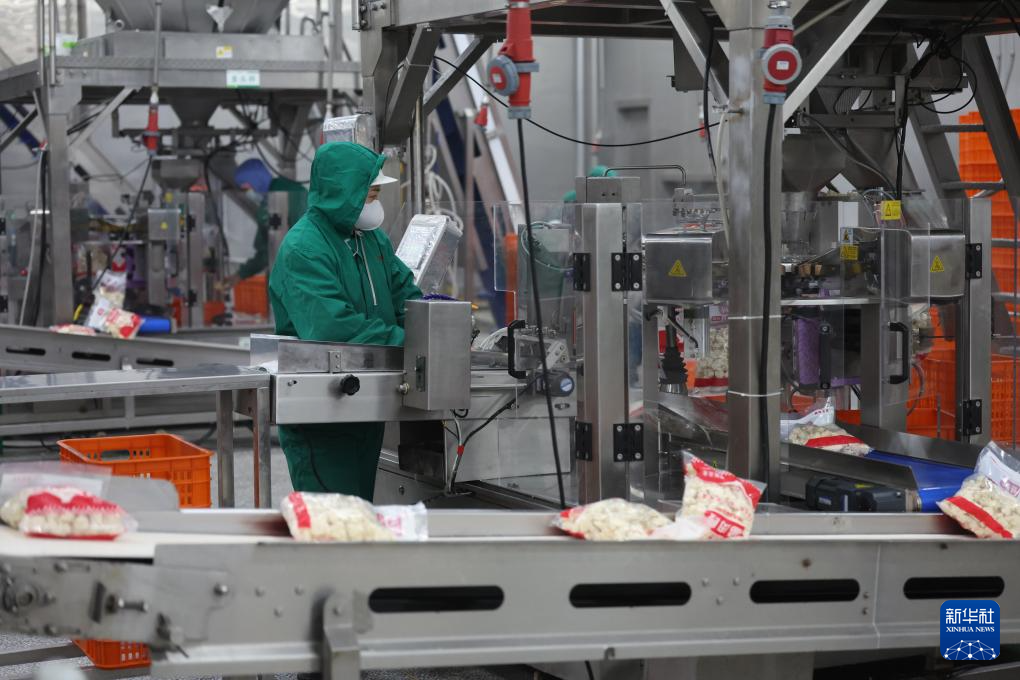 3月11日,在鞍山丰盛食品有限公司,工人在车间给鸡肉食品打包封装。新华社记者 杨青 摄