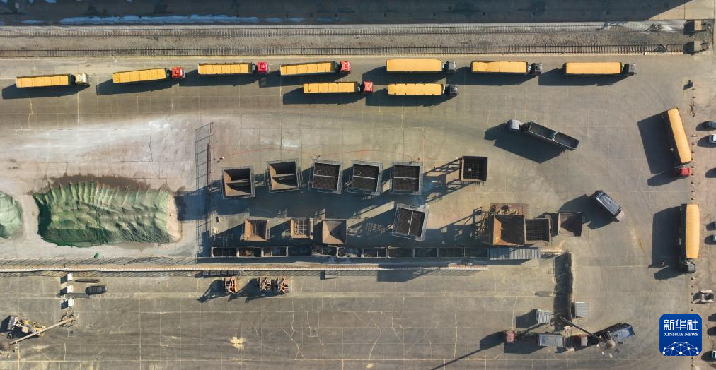 在营口港鲅鱼圈港区,运输玉米的敞顶箱车辆在码头等待。新华社记者 杨青 摄