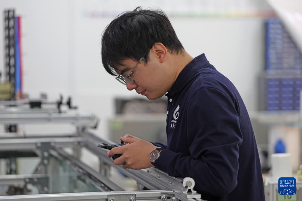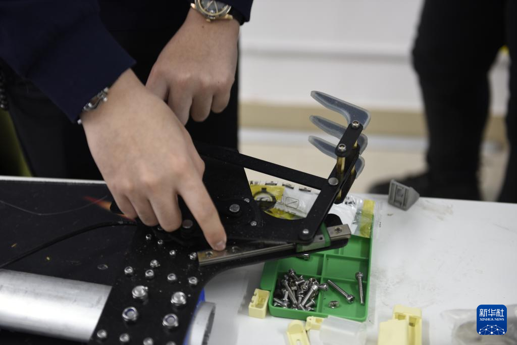3月18日,储逸尘在沈阳粼动仿生科技有限公司内组装水下仿生机器人机械爪。新华社记者 吴青昊 摄