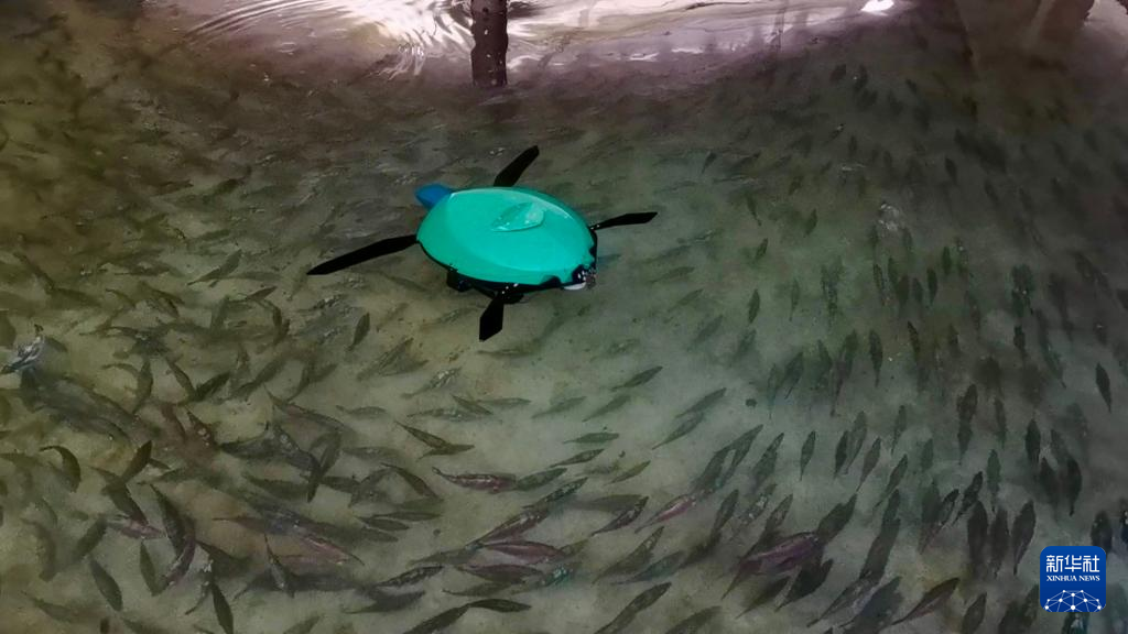 在大连一家渔业养殖场内拍摄的两栖仿生海龟机器人(2024年5月3日摄)。新华社发