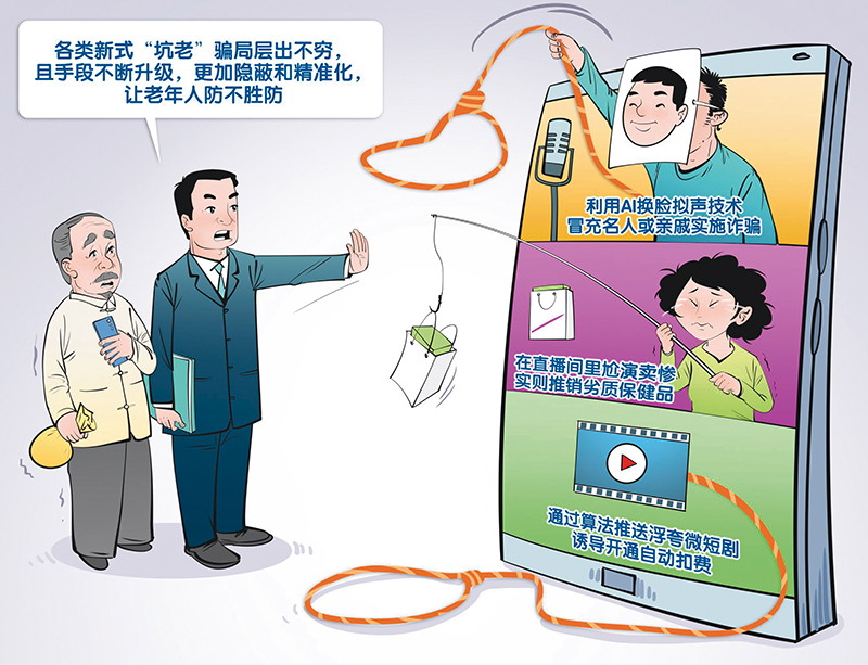 当前,一些不法分子编织的“投资返现”、“权威”背书、熟人拉拢“坑老连环套”在网络助力下更具欺骗性和传播效能,让一些老年人防不胜防。