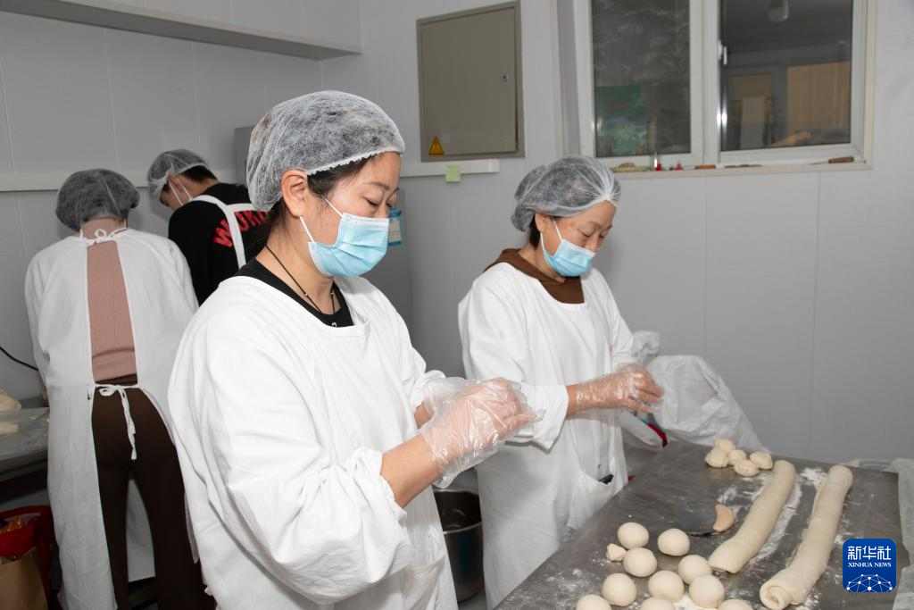 孤独症孩子的妈妈们正在制作面食。新华社发