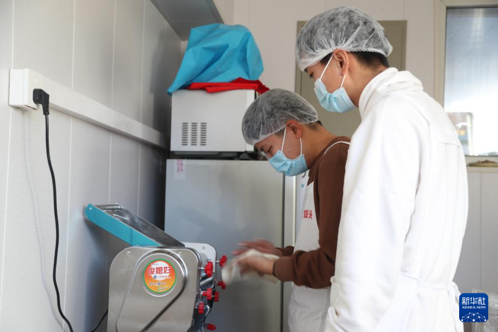 两个孤独症孩子正在馒头店里工作。新华社发