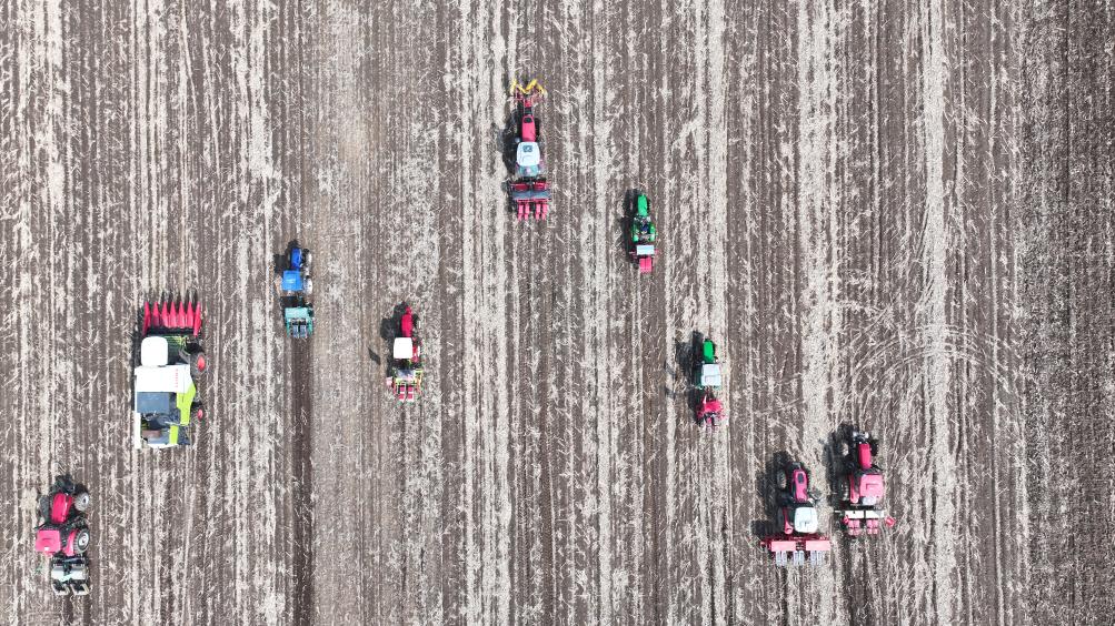 “突突突……”辽宁铁岭清河区张相镇的黑土地上,高速灭茬耙宽大的耙齿卷起秸秆碎浪,一次性完成秸秆破茬、灭茬、碎混、还田等工作,气吹式精量播种机紧随其后,“吹”出笔直的玉米田垄,同时完成施肥、覆土等工序,两台机器一天能接力播种玉米300亩以上。