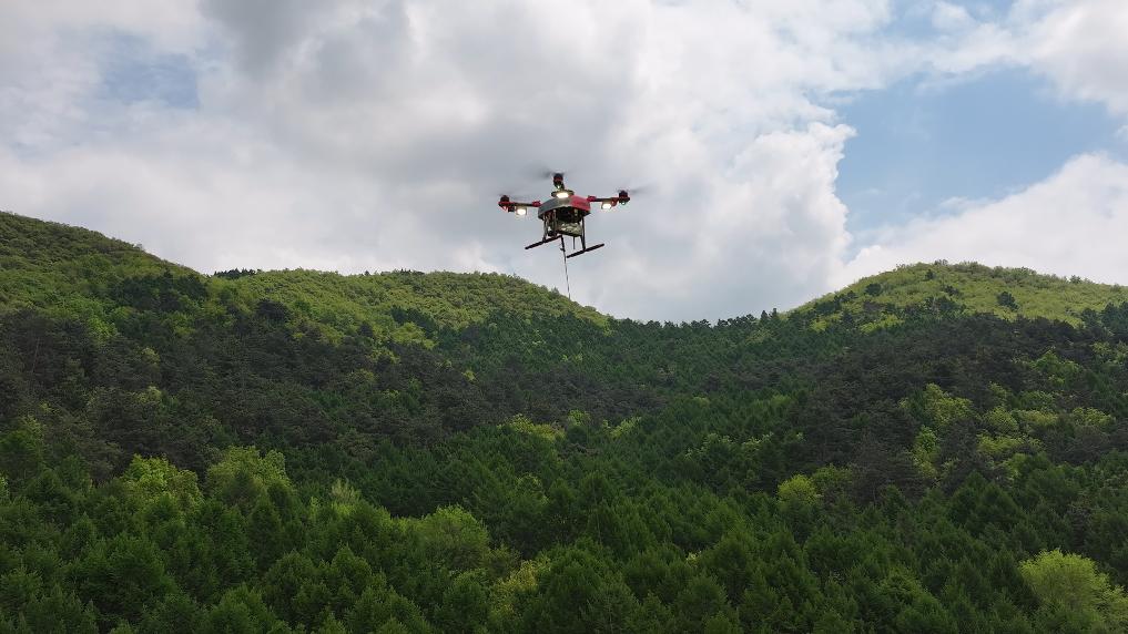5月6日,辽宁省海城市森林专业扑火队利用伊娃云智照明无人机在一处林场进行照明作业。