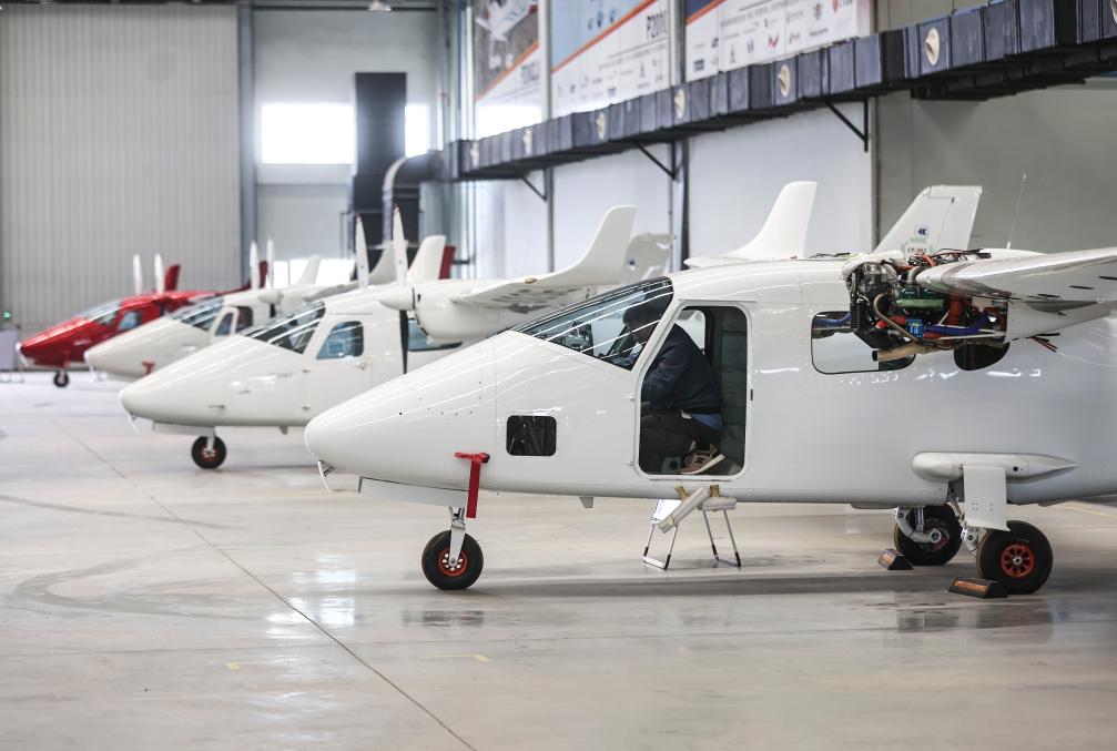 在沈阳的辽宁锐翔通用飞机制造有限公司,工人在组装飞机(2024年5月13日摄)。