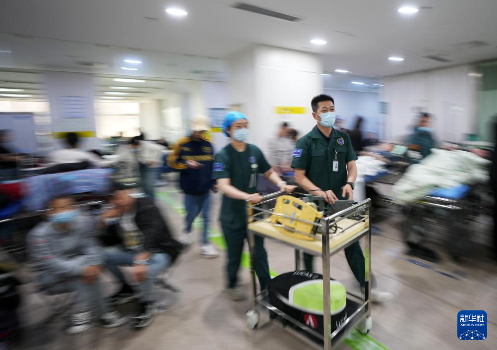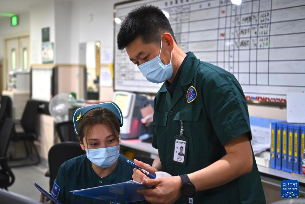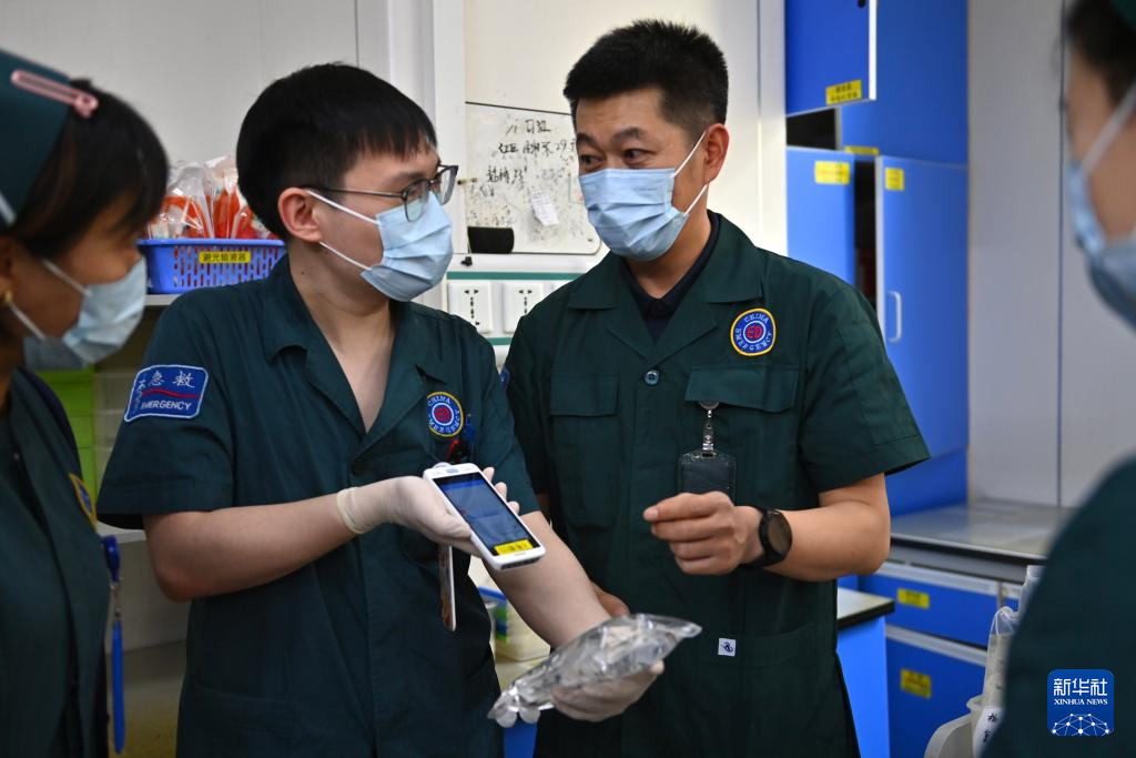 5月10日,护士长邵龙(右)带领护士准备进行呼吸心跳骤停抢救工作。