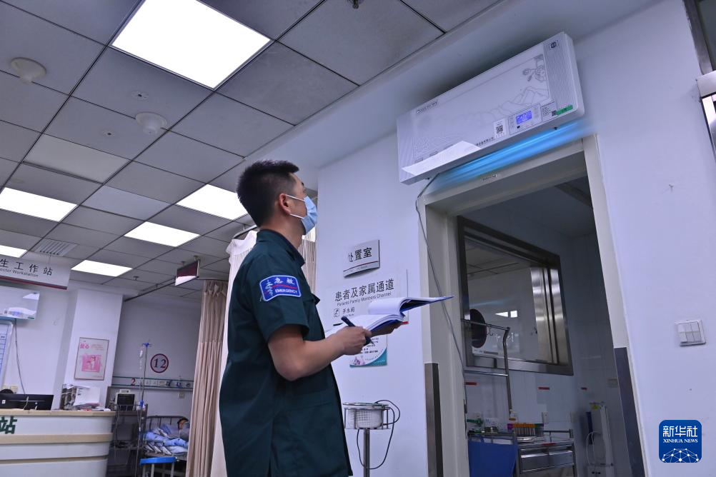5月8日,邵龙查看科室内消毒设备运行情况。
